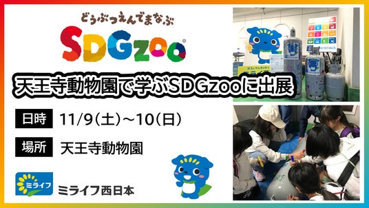 エネルギー・住まい・暮らしの総合サービス事業を提供するシナネンホールディングス株式会社(本社:東京都品川区、代表取締役社長CEO:中込 太郎)と、その子会社で、西日本エリアでLPガス・電気・灯油等のエネルギー販売事業を展開するミライフ西日本株式会社(本社:大阪府大阪市、代表取締役社長:中川 進弘)は、大阪府大阪市の天王寺動物園で開催される「天王寺動物園で学ぶSDGzoo」(主催:毎日新聞社)に、11月9日(土)・10日(日)の2日間出展いたします。