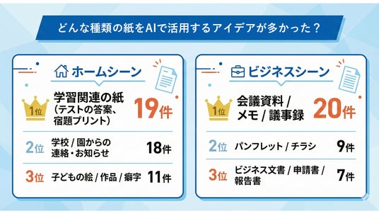 家庭の現場では、「紙」は単なる保管物ではなく、子どもの最適な教育と家族の円滑なコミュニケーションを支える「未活用のビッグデータ」として捉えられつつあり、AIによる分析・活用への期待が高まっていることが分かります。