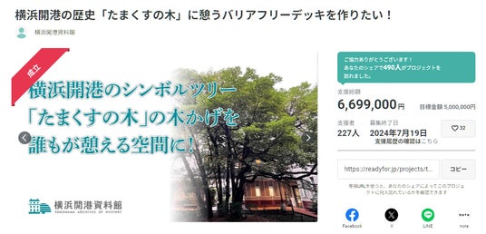 横浜開港資料館クラウドファンディング横浜開港の歴史「たまくすの木」に憩うバリアフリーデッキを作りたい!