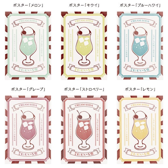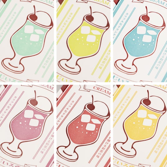 6色のクリームソーダをさまざまな印刷技法を組み合わせた8種のデザインで味わう、全48種のポストカードシリーズです。手仕事のぬくもりと技法の個性が光るカードからお気に入りの1枚をどうぞお手に取ってお楽しみください。