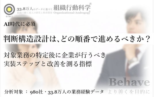 これまで当社は、企業の82%で仕事の中の判断経験が減少していること、管理職の72%が部下の判断機会減少を実感していること、そして判断できる人材が育つ企業では「組織の判断構造」が設計されていることを段階的に公開してきました。さらに直近の公開内容では、判断構造設計を最初に入れるべき対象業務と、その診断視点を整理しています。