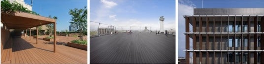 「M-Wood2」の使用例:ebisu green garden(デッキ) / 東京国際空港(デッキ) / 新座市役所(外装ルーバー)