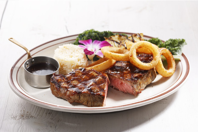 ダイナミックな1ポンド(450g)サーロインステーキをテリヤキ ソースとオニオンリングでハワイアンスタイルに。CAB(R)アンガスビーフのサーロインのきめ細やかな肉質、バランス良い脂と赤身の旨みが味わえます。グリルパイン、ガーリックライスとご一緒にお楽しみください。