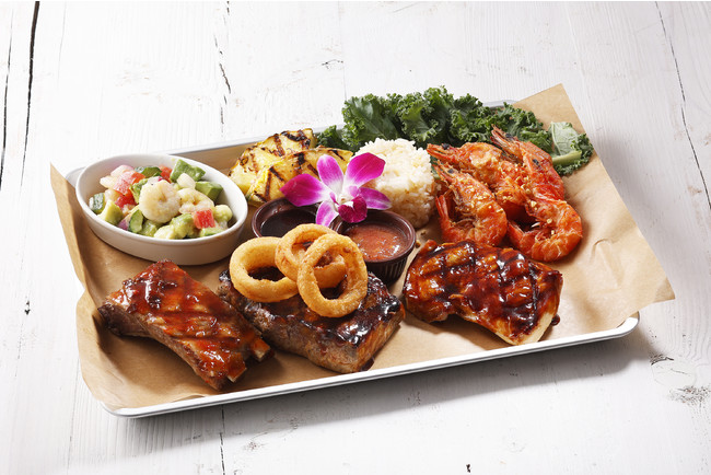 ハワイのグリル料理には欠かせないテリヤキソースで仕上げたCAB(R)サーロインステーキやローカルフードのガーリックシュリンプ、ポリネシアンソースで焼き上げたBBQポークリブ、テリヤキソースのフリフリチキンに、グリルパインとガーリックライスを添えた「Aloha!ビッグアイランドプラッター」をはじめ、シズラーならではのシェアプレート4品をご紹介します。