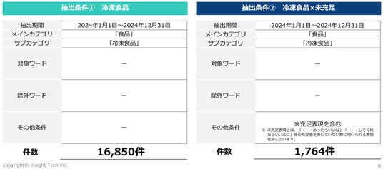 ・抽出条件2. 「冷凍食品」カテゴリに投稿され、かつ「未充足表現」を含むもの
