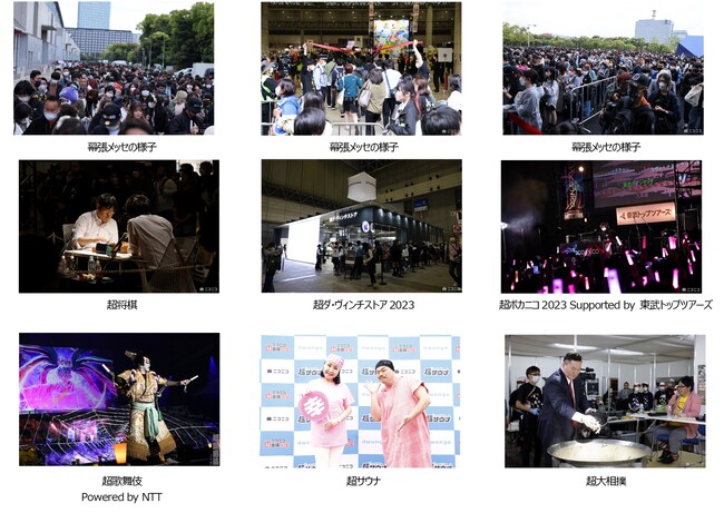 また今年はマスクを着用していれば歓声を上げることが可能になったことから、超歌舞伎『御伽草紙戀姿絵』、「VTuber Fes Japan 2023 Supported by Paidy」「超ボカニコ2023 Supported by 東武トップツアーズ」などのステージをはじめ、各ブースでは来場者のみなさんの歓声がよく聞こえました。また、新企画の「超サウナ」のブースでは、小林幸子プロデュースサウナ「小林幸子 健康ランド」に小林幸子本人も登場し、新曲『アツアツにしてあげる♪』を生歌唱したほか、6年ぶりに復活した「超大相撲」ブースでは現役力士や二所ノ関親方(第72代横綱稀勢の里)、宮城野親方(第69代横綱白鵬)、鶴竜親方(第71代横綱鶴竜)などが登場しユーザーとちゃんこ鍋を作る「超ちゃんこ鍋」を実施、「超将棋」ブースでは佐藤天彦九段vs.糸谷哲郎八段が2日間で計100局の早指し対局を行うなど、ニコニコ超会議ならではのユニークでエキサイティングな企画の数々が幕張メッセ全館を埋め尽くし、大きな盛り上がりをみせた2日間となりました。