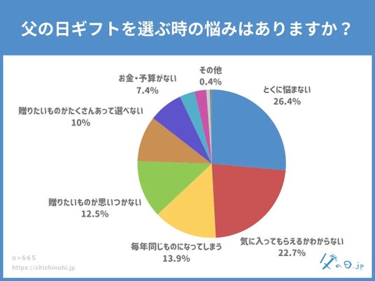 父の日についての様々な情報を発信している、父の日に特化した情報メディアサイト「父の日.jp」では、全国の10代~70代の男女(計665名)を対象に「父の日ギフトを選ぶ時の悩みはありますか?」というアンケートを実施し、調査データを公開しました。