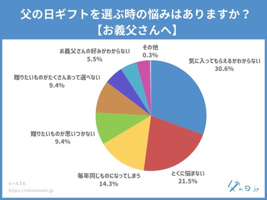 - 最も多かった悩みは「気に入ってもらえるかわからない」22.7%。義父に限ると30.6%とさらに高水準。