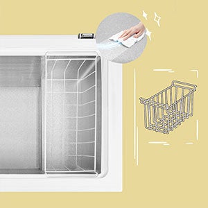 仕分けに便利なワイヤーバスケットが付属しており、小物類をすっきりと整理整頓できます。取り出しやすい設計で、必要なものをすぐに見つけられ、使い勝手も抜群です。冷凍庫内のスペースを有効に活用できます。
