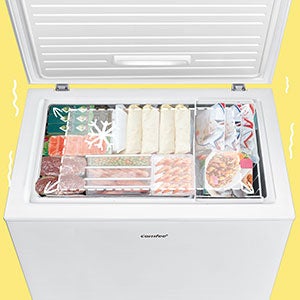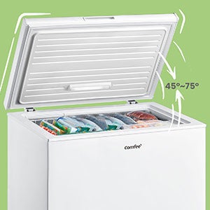 たっぷり入って省エネ上手。COMFEE'の99L上開き冷凍庫は、6段階温度調節&静音設計で、まとめ買いも安心の頼れる一台。
