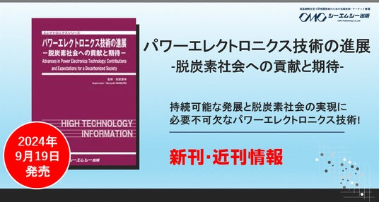 株式会社シーエムシー出版(本社:東京都千代田区神田錦町1-17-1、代表取締役:辻賢司)は、軟磁性材料の開発や受動素子技術、シミュレーション技術、車載用パワーエレクトロニクス技術の動向について解説した書籍『パワーエレクトロニクス技術の進展』(監修:岩室憲幸)(定価:税込71,500円)を、2024年9月19日に発売いたします。本書籍は、当社ECサイトおよび全国の書店にてご購入いただけます。