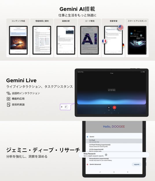 コストパフォーマンスと高性能で日本市場を席巻するDOOGEE(ドゥージー)は、人気タブレット「DOOGEE U11」において、タブレット業界での最新OS「Android 16」に加え、Googleの先進AI「Gemini AI」を搭載したモデルを正式発表しました。