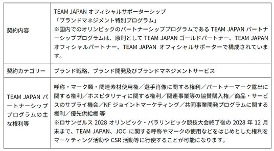 ■ TEAM JAPAN オフィシャルサポーターシップ契約概要