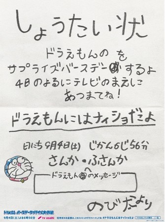 タイトル:NEWSPAPER INVITATION TO DORAEMON’S BIRTHDAY PARTY/ドラえもんバースデーサプライズ大作戦