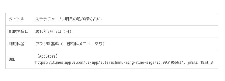 株式会社ザッパラス(本社:東京都渋谷区、代表取締役会長兼社長:玉置 真理)は、2016年9月12日より、ステラ薫子監修の占いアプリ『ステラチャーム』を提供開始いたします。