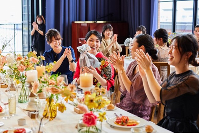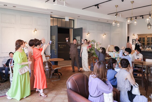 職場の人を招待しないことにより、従来は主賓が行うことが多かった乾杯の発声も変化しています。ご友人やご新郎ご新婦が行う場合もありますが、最近ではお子さまが行うことも増えてきました。歓談や写真撮影をゆっくり楽しみたいという希望が多い一方、二次会を行わない方もいることから、参加型のゲームやイベントで盛り上がる披露宴も。また、友人に余興を依頼することで「負担をかけたくない」という理由から、ご新郎ご新婦が進行役となりゲスト全員で盛り上がる演出の人気も高まっています。