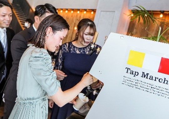 ご新郎ご新婦がセレクトした日本のクラフトビールを、ゲストの目の前で1杯ずつ注ぐライブ感が非常に好評です。おふたりの出身地の ビールを選ぶこともできるので、コミュニケーションのきっかけになり、挙式前からゲスト同士の会話も弾みます。(アーククラブ迎賓館広島/伊原直輝)