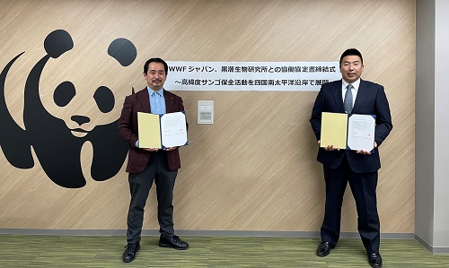 公益財団法人 世界自然保護基金ジャパン(東京都港区、会長:末吉竹二郎、以下WWFジャパン)は、本日1月11日、公益財団法人黒潮生物研究所(高知県幡多郡、理事長:深田純子、以下黒潮生物研究所)とサンゴ保全の活動の協働に向けた協定書を締結しました。WWFジャパンは長年、沖縄県石垣島等でサンゴの保全活動を行なってきましたが、国内のサンゴを守る新たな取り組みの一つとして、高緯度サンゴ群集域のサンゴを対象とした活動を決定し、黒潮生物研究所と共に四国南太平洋沿岸(高知県、愛媛県、徳島県)での活動を展開していきます。
