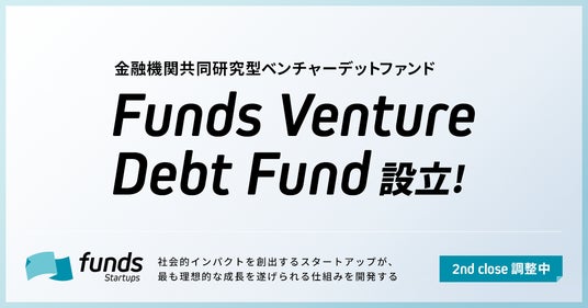 新興企業に成長資金を届ける「Funds(ファンズ)」を運営するファンズ株式会社(本社:東京都渋谷区、代表取締役CEO:藤田雄一郎、以下 当社)は、2023年12月に設立した子会社(FundsStartups株式会社)をGPとし、ミドル・レイターステージのスタートアップ企業向けデットファンドである「Funds Venture Debt Fund 1号投資事業有限責任組合」(以下 本ファンド)を設立することを決定いたしました。また、本ファンドの1stクロージングとして、三井住友信託銀行株式会社、株式会社福岡銀行の参画が決定したことをお知らせいたします。