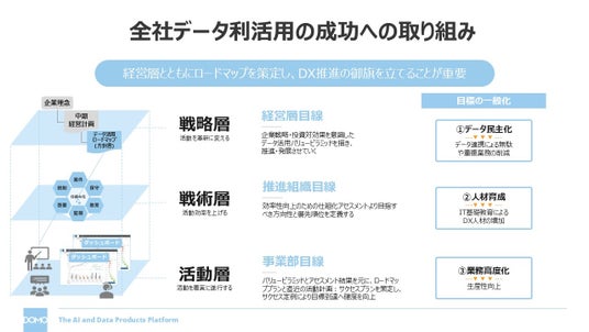 多くの企業が中期経営計画でDXやデータ活用のビジョンを掲げていますが、具体的な取り組みが明示されていないため、社員に認識のズレが生じ、各部門の活動が全社のビジョンと連動しにくい状況があり、これが、DXの加速を阻む要因となっています。