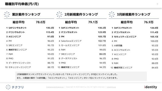 また、AI関連の案件「AI研究職」「AIコンサルタント」「AIエンジニア」が5~7位にランクインしております。
