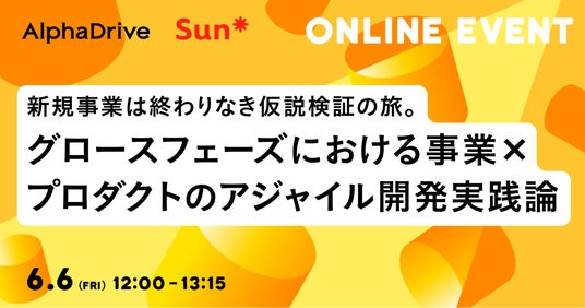 GROWGRITの設立にあわせて、AlphaDrive・Sun*の共催で「新規事業のプロダクト開発」に関するナレッジを提供するウェビナーイベントを開催します。テーマは「グロースフェーズにおける事業×プロダクトのアジャイル開発実践論」です。