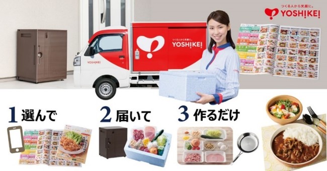 ヨシケイは1975年の創業、今年の11月で47年目を迎えます。全国65FC、299営業所より、管理栄養士監修のミールキットをスタッフがご自宅に直接お届けします。冷凍・冷蔵を同時にお届けできる専用BOXで鮮度も安心。不在がちのお客様には鍵付きの専用宅配ボックスを無償で貸し出ししているので、時間を気にせず受け取りが可能です。