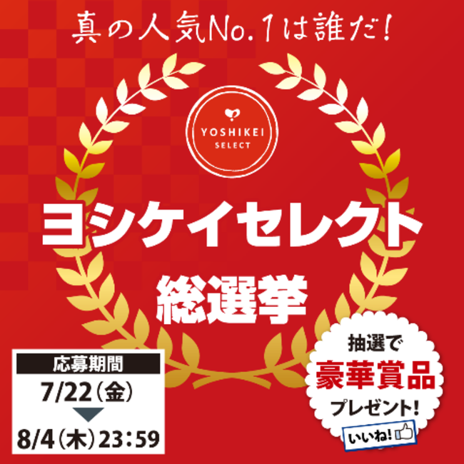 つくる人から笑顔に。をテーマに全国でミールキット宅配サービスを提供するヨシケイグループ(本部所在地:静岡県静岡市 / 代表取締役:井野口 雄一)は、調理済みでレンジや湯煎で手軽に食べられる、ヨシケイのオリジナルブランド「ヨシケイセレクト」のユーザーへのさらなる宣伝活動のため、人気商品を決める「ヨシケイセレクト総選挙」を7/22(金)より開催いたします。また総選挙と併せて、応募者の中から抽選でヨシケイセレクト商品が当たるプレゼントキャンペーンをヨシケイ公式SNSにて実施いたします。