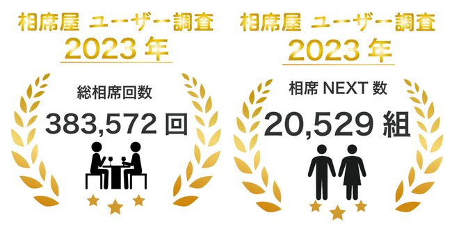 2023年5月の相席屋は、総相席回数383,572回、総同時退店数20,529組を突破いたしました。(2021年度~2023年5月までの合計数)