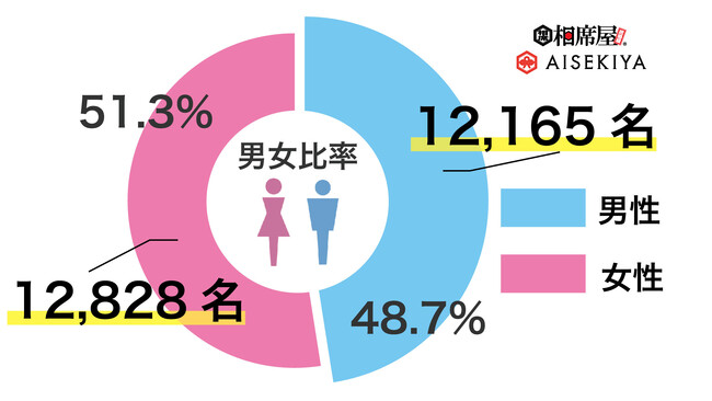 2023年5月の相席屋への男性来店数は12,165人、女性来店数は 12,828人を突破。男性48.7%、女性51.3%でした。また、男性来店数のうち初めて来店した男性は3,884人、2回以上来店した男性は8,281人、女性来店数のうち初めて来店した女性は4,240人、2回以上来店した女性は8,588人でした。