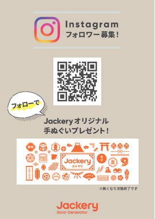 Jackery Japan 公式Instagramをフォローいただいた方に、Jackery オリジナル手ぬぐいをプレゼントします!
