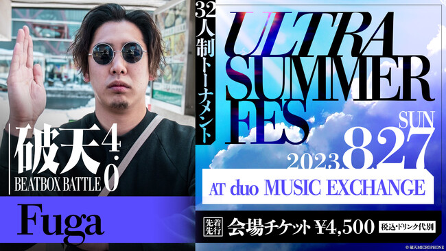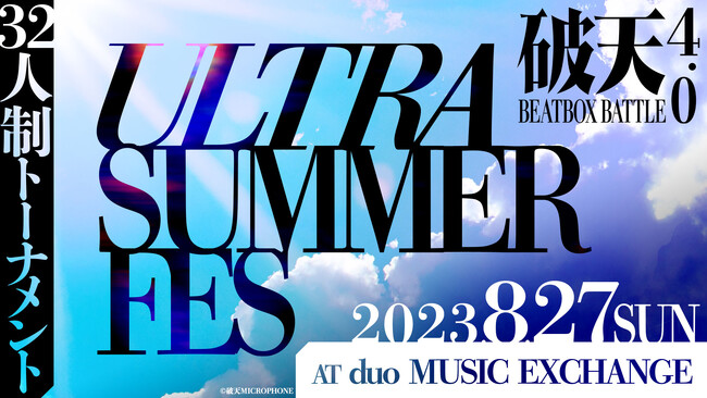 株式会社イザナギゲームズ(東京都江東区、プロデューサー兼CEO:梅田慎介)は、2023年8月27日(日)duo MUSIC EXCHANGE(東京都渋谷区)にて、32人制トーナメント『破天BEATBOXBATTLE 4.0 ULTRA SUMMER FES』を開催することを発表いたしました。