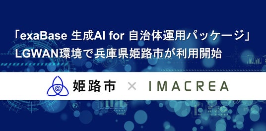 株式会社イマクリエ(本社:東京都港区、代表取締役:鈴木信吾、以下、当社)は、兵庫県姫路市において「exaBase 生成AI for 自治体運用パッケージ」(以下、本パッケージ)の提供を開始し、LGWAN環境での運用を正式に開始しました。