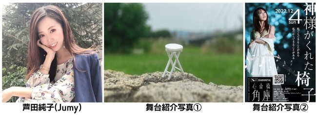 松竹芸能所属タレントであり、重度のアスペルガー症候群(自閉症スペクトラム)の芦田純子(アーティスト名Jumy)は、2022年12月4日(日)DAIHATSU心斎橋角座にて演劇×音楽イベント「神様がくれた椅子」を公演します。