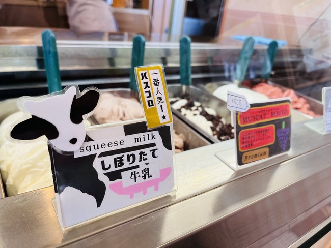 しぼりたて牛乳 / チョコレート / イチゴ / 抹茶 / マンゴー / ラムレーズン / キャラメル / プリン / ピスタチオ