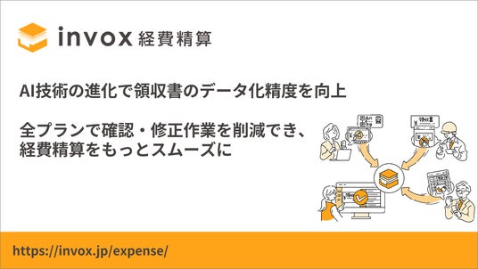 株式会社invox(本社:東京都新宿区、代表取締役:横井 朗)が開発・運営する「invox経費精算」は、AIによるデータ化工程の改善により、領収書のデータ化精度を向上しました。
