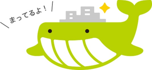 「ユトジラ」: 背中にJKKが考える理想のまちをのせたクジラの妖精。趣味は緑に紛れてお昼寝をすること。