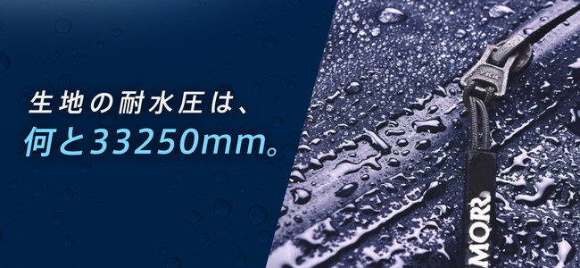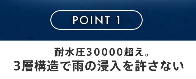 耐水圧30000mm超の防水・撥水生地と斜め掛けの三層構造で雨の浸入を完全ブロック。