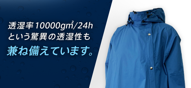 徹底防水性能+オーバーサイズ設計で横殴りの暴風雨からも徹底的に守るコートタイプレインウェア。