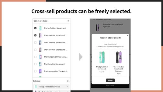 お客様が商品をカートに入れたタイミングで、関連商品やおすすめ商品を即座にポップアップ表示。自然なクロスセルで売上アップを実現します。