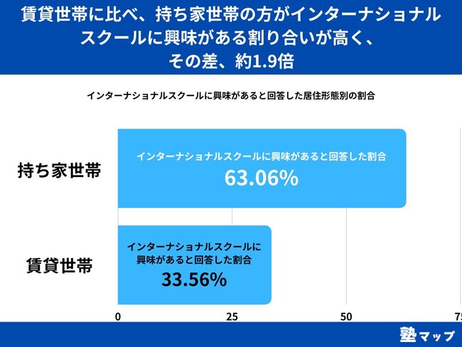 【賃貸世帯に比べ、持ち家世帯の方がインターナショナルスクールに興味がある割り合いが高く、その差、約1.9倍】