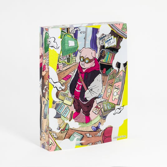 書籍のカバーイラストを使用したアクリルブロック。