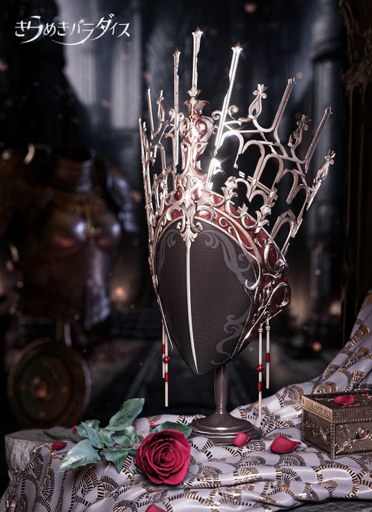 細部のデザインには特にこだわり、胸元には血色のクリスタルで装飾された薔薇が施されています。腰部の金属デザインには戦の痕跡を表現し、複雑な構造によって脆さと強さの対比を生み出しています。また、持ち物やアクセサリーには「薔薇」をテーマにしたデザインが貫かれ、冷たい金属と枯れた枝の武器や大きな尾飾りが象徴的に配置されています。