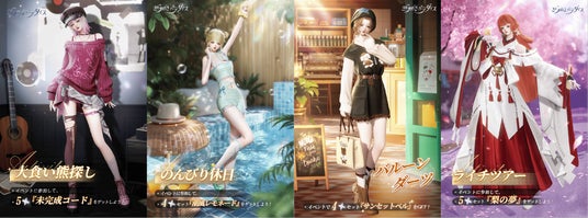 7月24日から『大食い熊探し』、7月27日から『のんびり休日』、8月1日から『バルーンダーツ』、8月7日から『ライチツアー』が開催されます!期間限定星5セット「未完成コード」、「梨の夢」や星4セット「潮風レモネード」、「サンセットベル」を無料で入手できるので、ぜひ参加してみてください!