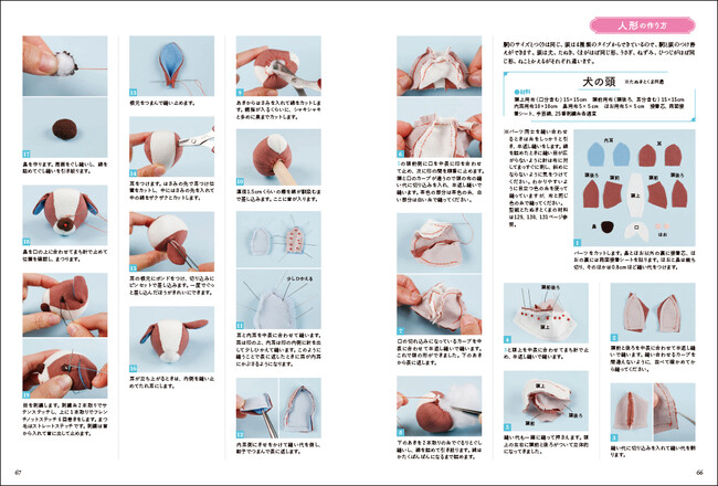 身長17cmほどの手足の動く動物たちは、ボディが共通で作り方も簡単に、8種類の動物の頭と洋服や着物を着せ替えることができます。メインとなる人形の作り方や着物などは写真で作り方を解説しているので安心。作って飾ってお人形遊びもできる一冊です。