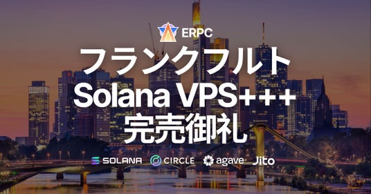 ELSOUL LABO B.V.(本社:オランダ・アムステルダム、代表取締役CEO:川崎文武)が運営するERPCのSolana用途に特化した高性能VPS「VPS+++(32GB)」が、フランクフルトリージョンで完売御礼となりました。多くのお客様からの厚いご支持に心より感謝申し上げます。