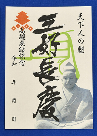 三好長慶は、阿波国(徳島県)出身で、天文22(1553)年に芥川城に入り、足利将軍家の力を借りずに自らの名で近畿一円に号令したことから織田信長に先駆けた天下人とされる人物。新デザインには、従来の武将印でも使用した地元に残る古文書に署された三好長慶の花押(サイン)と家紋「三階菱に釘抜」に加え、本市の景勝地・摂津峡公園に建つ三好長慶像を初めてデザインに採用。