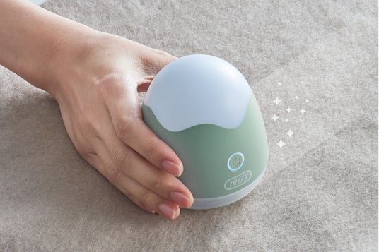 やさしく灯るライト付きで、毛玉取り機能とは連動せず、ライトだけで使えます。やわらかいライトをともせば癒しのアイテムに早変わり。本体の淡い色合いと相まって、どこに置いても生活感が出にくく、インテリア照明としてもお使いいただけます。