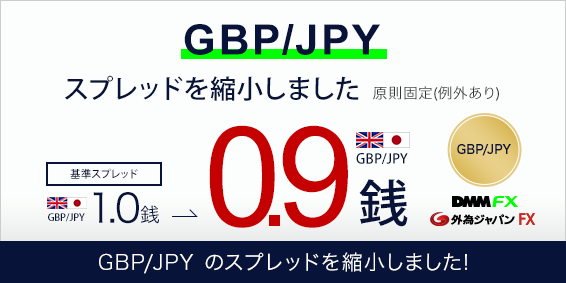 株式会社DMM.com証券(本社:東京都中央区、代表取締役 谷川龍二)が提供する【DMM FX】ならびに【外為ジャパンFX】において、2022年8月1日(月)16時00分より「GBP/JPY(ポンド/円)」の基準スプレッドを縮小いたしましたので、ご報告いたします。