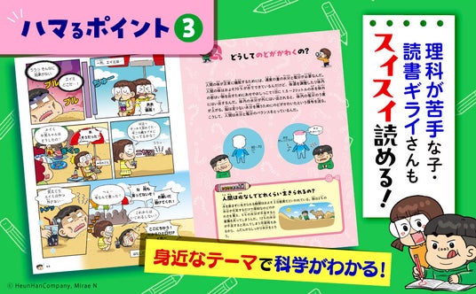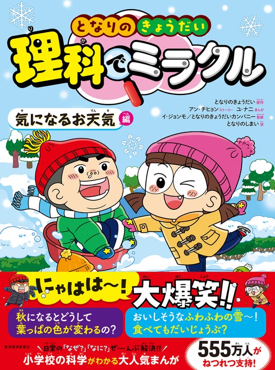 ギャグ満載で大笑いしながら繰り返し読めるから、勉強している感覚はゼロ。おもしろいのに「科学のキホン」がスイスイ頭に入ると話題を呼び、世界で555万部を突破した学習まんが『となりのきょうだい 理科でミラクル』シリーズが、ついに日本で発売。本作が生まれたのは、おとなり韓国。教育に対する意識が非常に高い国ですが、その中でいま絶大な支持を獲得しているのがこのシリーズ。小学生の間では、このまんがを知らない子はいない!という超人気作品です。